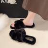Thick-soled fluffy slippers women's wear 2025 new autumn and winter Internet celebrity rabbit fluffy fluffy shoes one-word cotton slippers