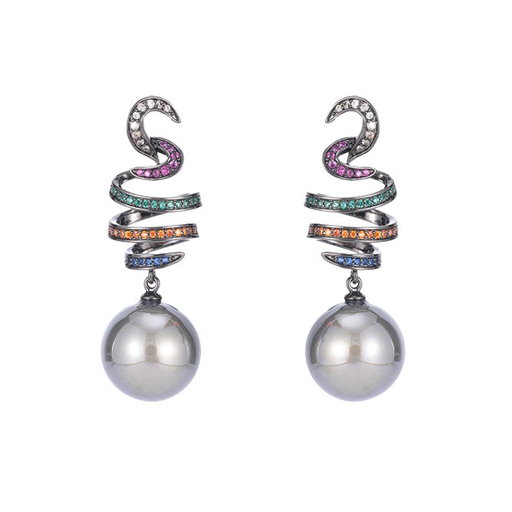 French Light Luxury Celebrity Design Rotating Color Pearl Earrings Slightly Inlaid Zircon Retro Court Style Earrings Earrings