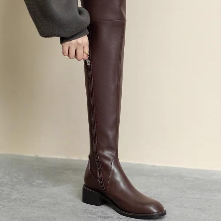 2025 wersja koreańska pokazuje nogi szczupłe za kolano długie kozaki damskie niski obcas poszerza obwód nogi zimowe cienkie aksamitne wysokie kozaki rycerskie brązowe