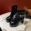 Botki skinny jesień i zima damskie buty Martin grube obcasy małe 2025 nowa moda wodoodporne stołowe wysokie obcasy nie męczą stóp krótkie botki