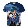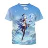 Okrągły Dekolt 3D Nadruk Postaci z Anime Genshin Impact Casualowe Damskie Koszulki z Krótkim Rękawem - Miękki Materiał o Średniej Rozciągliwości Letnia Odzież o Luźnym Kroju