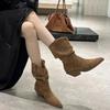 Zamszowe Damskie Kozaki do Połowy Łydki Jednokolorowe na Średnim Obcasie Modne Zimowe Nowe Damskie Szpiczaste Palce Uniwersalne Plisowane Kozaki Modowe