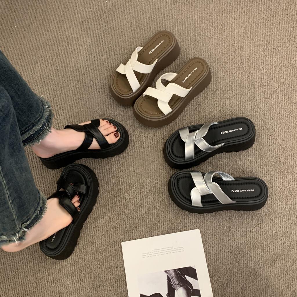 Thick-soled cool slippers women's summer outer wear 2025 new models with skirts to increase the sense of fashion muffin shoes casual one-word drag