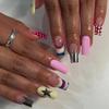 24PCS Medium Square Stick on False Nails Cute Cartoon Apple Patterns with Stripes Grid French Fake Nails for Women Wearable Nail