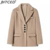 BITCED Modny płaszcz z polaru wełnianego z dużym kołnierzem dla kobiet na wiosnę/jesień, jednorzędowy, z długim rękawem, elegancki płaszcz