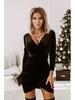 2025 Wiosenna Sukienka Bodycon z Dekoltem w Serek i Długim Rękawem z Aksamitu