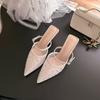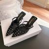 Grape mother summer new beautiful hot diamond temperament small pointed mesh yarn breathable 6cm thin heel empty sandals women