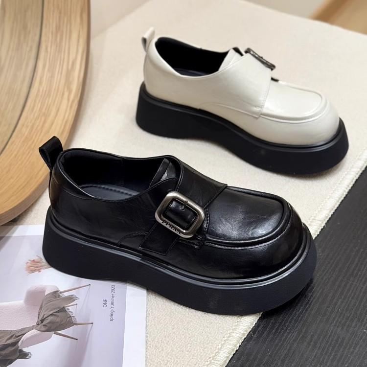 Platform loafers women's 2025 new spring brown versatile comfortable one-pedal single shoes British style small leather shoes