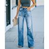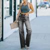 Jesienne damskie spodnie casualowe z szerokimi nogawkami, dżinsowe spodnie z dziurami ze średnim stanem