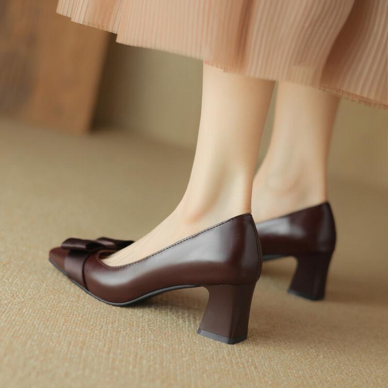 New low-top shallow single shoes casual high heels black square head one-pedal lazy shoes wear women's leather shoes in all seasons