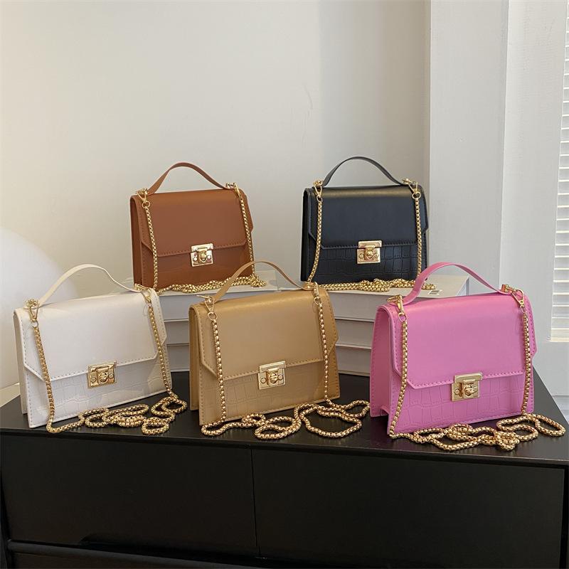 Simple and fashionable bag 2025 new summer casual solid color crocodile pattern small square bag casual messenger shoulder bag