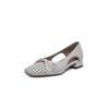 Ruoji French leather hollow low heel shallow mouth single shoes women's 2025 summer new comfortable versatile breathable sandals