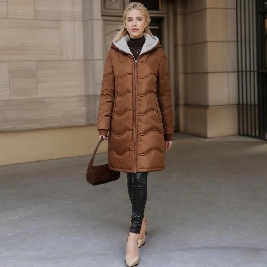 Damski Długi Płaszcz Puffer Zimowy Polarowy Podszyty Pogrubiony Kurtka Puchowa Wiatroodporny Ciepły Pikowany Parka Zapinany na Zamek Kaptur Odzież Wierzchnia