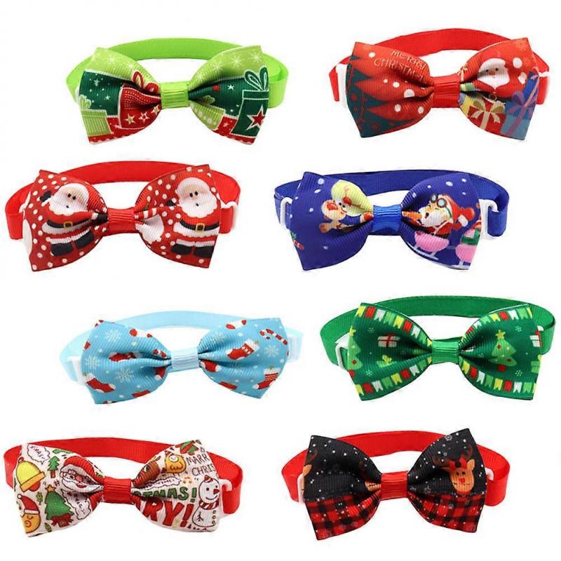 Adjustable Pet Collars with Christmas Bow Ties for Dogs and Cats 40Pcs