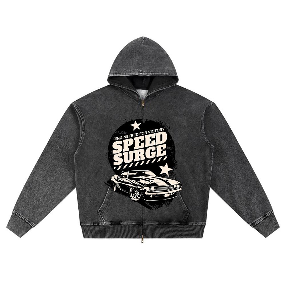 DTG print Knitted Denim Zip-Up Hoodie Speed Surge Brother Print Zipper Hoodies