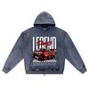 DTG print Knitted Denim Zip-Up Hoodie Legend Drift Urban Streetwear Brother Print Zipper Hoodies