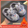 2025 Bawełniane Kapcie Chłopięce Labubu - Uroczy Kreskówkowy Wzór, Unisex, Antypoślizgowe, Ciepłe na Jesień i Zimę