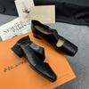 Grape Mom Studio Wysokiej klasy mokasyny ze skóry końskiej z kwadratowym noskiem i masywnym obcasem dla kobiet - Styl jesienny