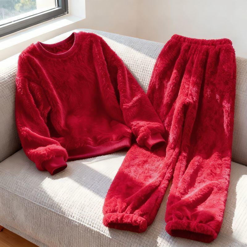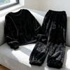 Autumn Winter Women plus size Pajamas Thickened Flannel Loungewear Crew Neck Loose Loungewear Set