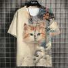 T-shirt 3D Męski z Nadrukiem Kota Wygodny z Krótkim Rękawem Wygodny Wszechstronny Modny