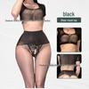 Aurora Black Open Crotch Stockings with Removable Pearl Massage Socks