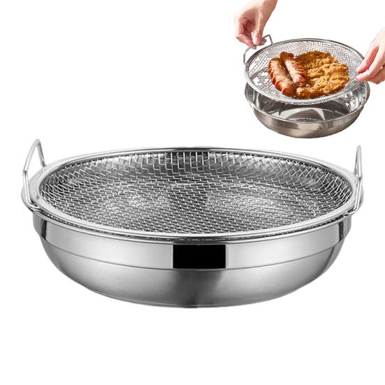 Kosz ze stali nierdzewnej z filtrem Wielokrotnego użytku Okrągła taca siatkowa Do smażenia Grillowania Durszlak kuchenny Kosz do filtrowania owoców warzyw wody