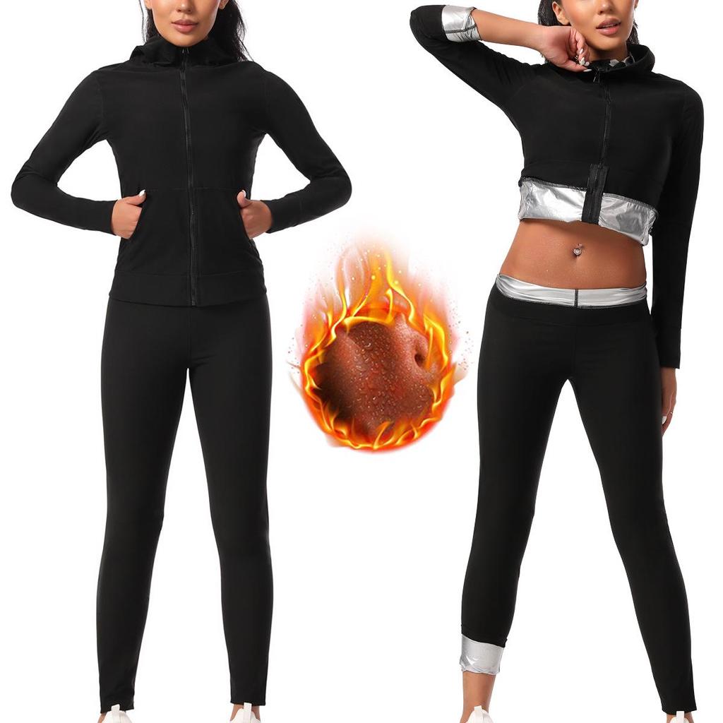 Damski Zestaw do Jogi z Długim Rękawem i Zamkiem: Kombinezon do sauny z kapturem do fitness i biegania