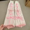 Dzianinowe, sznurowane, szerokie, rozszerzane nogawki z czaszką dla kobiet