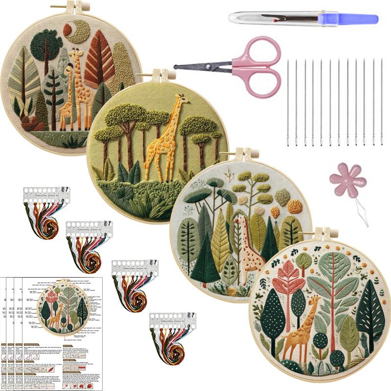1pc Giraffe and Green Plant Pattern DIY Embroidery Kit for Beginners