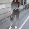 Zestawy Damskie 2-częściowe Koszulki z Okrągłym Dekoltem i Długim Rękawem Drukowane Spodnie Dresowe Zestawy z Kieszeniami