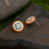 Pozłacane Retro Kolczyki Sztyfty z Emalią Komórkową - Etniczny Geometryczny Design High-End.