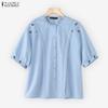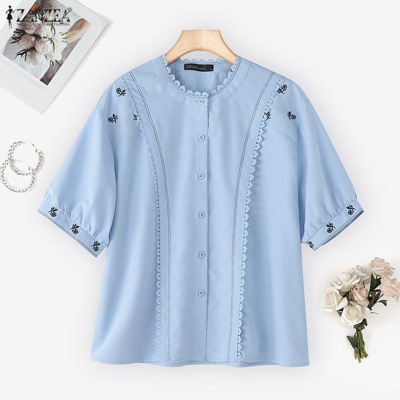 ZANZEA Summer Women Round Neck Short Sleeve Crochet Embroidery Casual Blouse