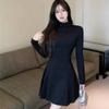 Jesień Zima Wysoki Kołnierz Jednolity Elegancki Modny Mini Sukienka w Talii Kobiety Długi Rękaw Uniwersalna Podstawa Szata Vestidos