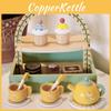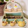 Wooden Layer Double Dessert Stand With Tea Set Cakes For Kids Growth Cognitive