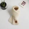 Zimowy gruby szalik dzianinowy dla dzieci: Styl koreański, Wiatroodporny, Jednolity kolor, Skórzana naszywka