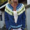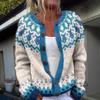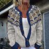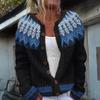Swetry kardigan Fair Isle dla kobiet z okrągłym dekoltem, o luźnym kroju, zapinane na guziki, gruby sweter, otwarty przód, casualowa jesienna dzianinowa kurtka