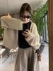 Damski kardigan w stylu francuskim z dekoltem w serek i rękawami lampionowymi na wczesną wiosnę