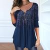 2025 Europejski i Amerykański Rozmiar Plus Jesienny Damski Top T-shirt z Nadrukiem Zapinany na Guziki z Długim Rękawem