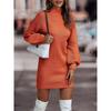 Jesień i Zima Jednolity Kolor Długi Rękaw Modna Sukienka Swetrowa z Wysokim Dekoltem dla Kobiet