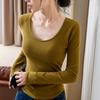 Velvet U-Neck Ruched Long Sleeve T-Shirt - Slimming Chic Autumn/Winter Innerwear