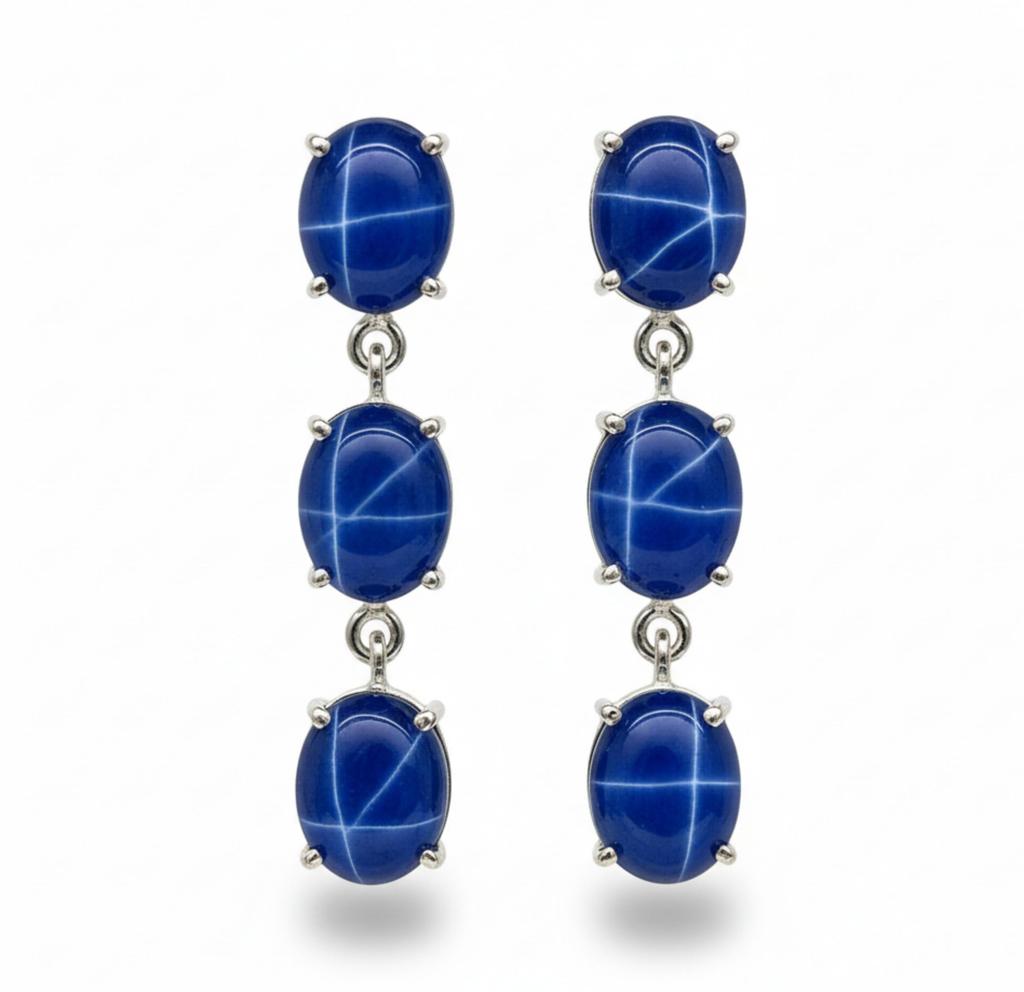 Blue Star Sapphire Dangle Drop Earrings, 925 Solid Sterling Silver, Sapphire Minimalist Jewelry