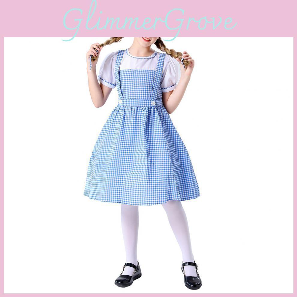 Of Wizard The Oz Dorothy Gale Blue Checkered Roleplay Dress Costumes Halloween