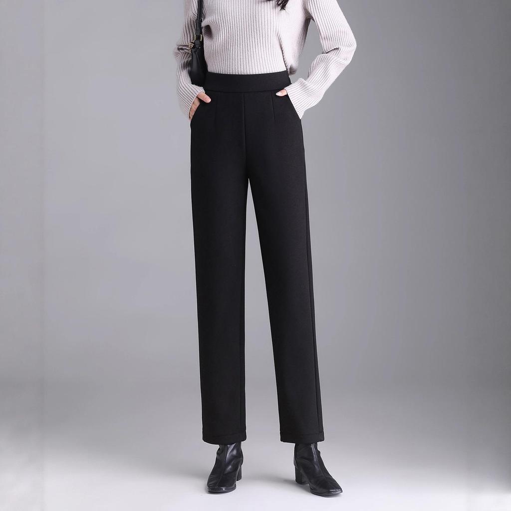 Damskie spodnie cygaretki z wełny z wysokim stanem - Jesień/Zima, Ciepłe, Wszechstronne, Casualowe, Z dodatkiem aksamitu i pogrubione.
