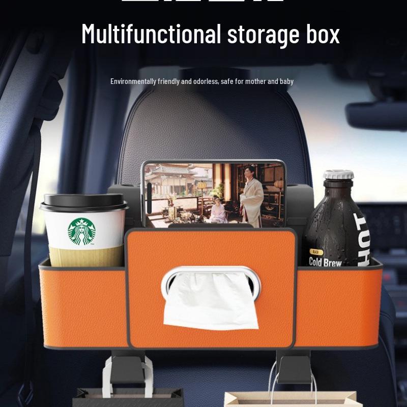 Multifunctional Car Seat Back Organizer with Tissue Box and Cup Holder Hooks