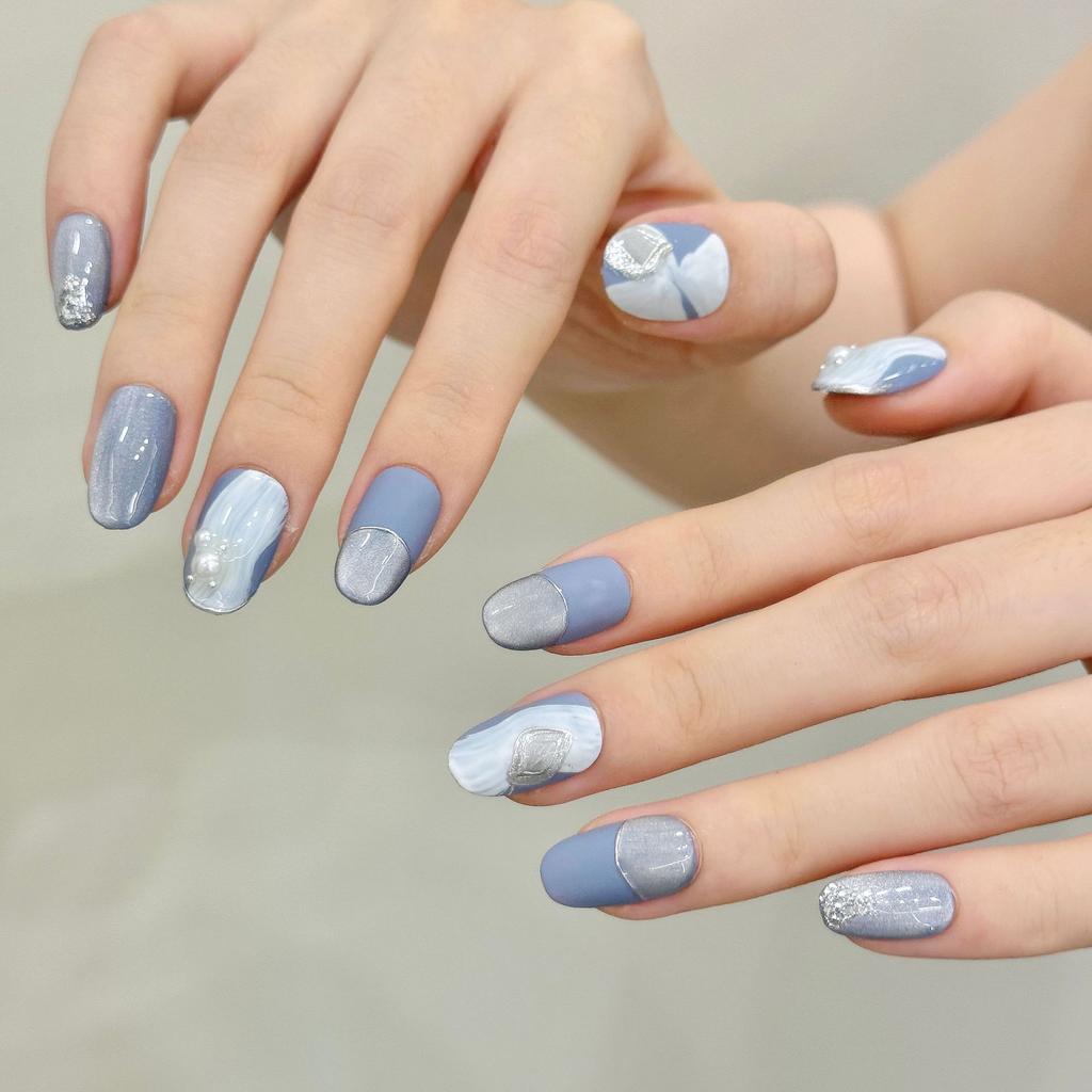 Medium Square Press on Nails Glitter Glossy Reusable Gel Press on Acrylic Fake Nail with Designs Stick on Nails Reusable Full Cover Nails for Women