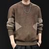 Męski sweter dzianinowy w stylu retro patchwork color block – luźny casualowy styl zimowy