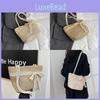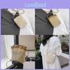 Woven Mini Straw Bucket Bag For Girls Pu Material Summer Accessory Messenger Bag
