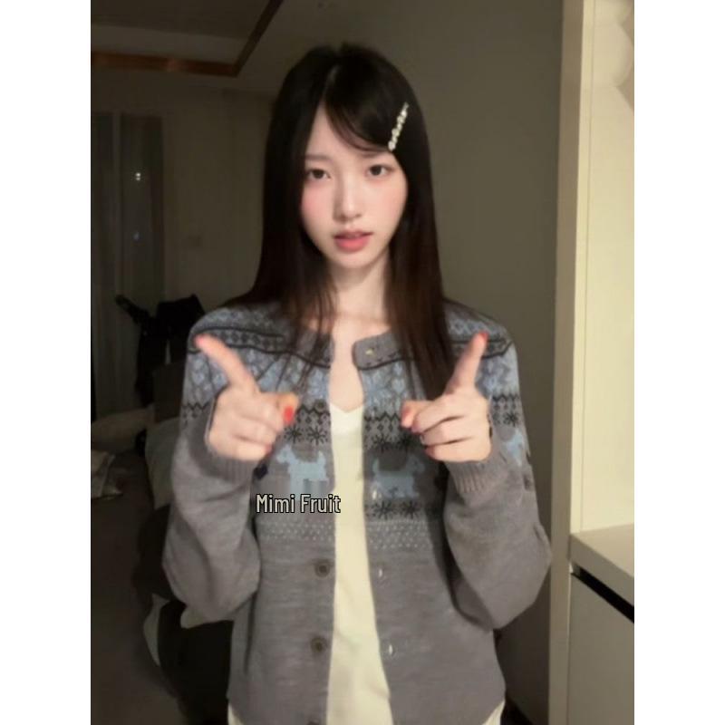 Women's Retro Korean Style Jacquard Cardigan