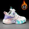 Rotating button boys shoes spring 2025 new children's basketball shoes sports middle and older boys velvet cotton shoes tide