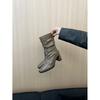 French temperament high-heeled thin short boots women's shoes 2025 new autumn and winter pleated square head short boots children
